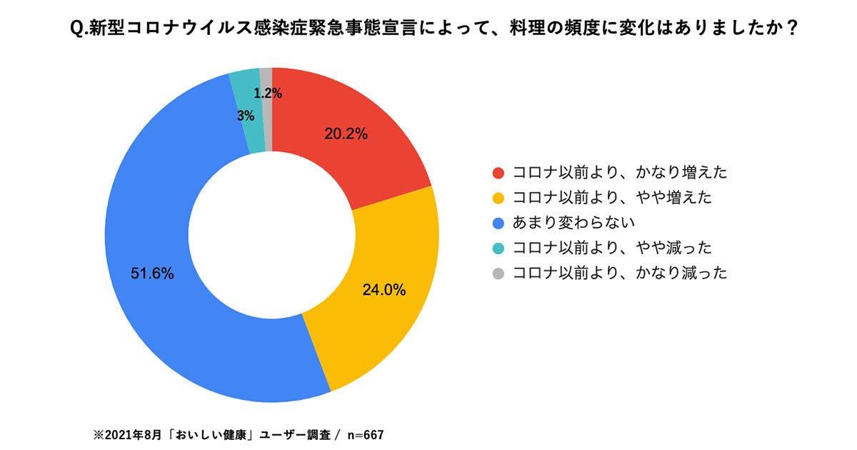 コロナ禍で料理頻度が増えたと約44%が回答!