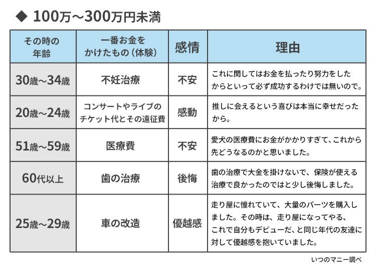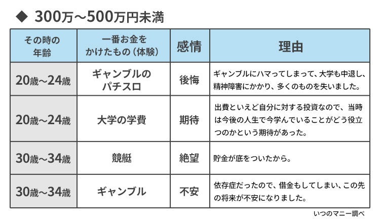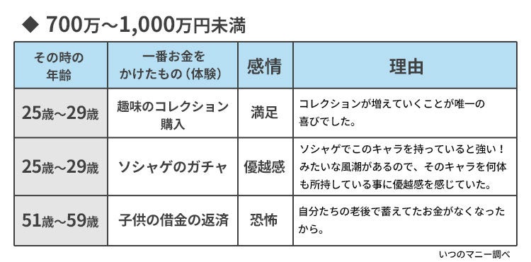 使用用途、その時の年齢、金額を見ると驚きを隠せませんが、自分の好きなことであればどれだけ高額でもポジティブな感情で支払うことが出来るようですね。