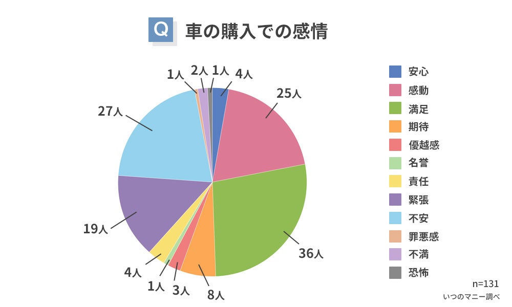 車の購入に関しては、『ずっと欲しくてやっと購入できた』というポジティブな感想と『車が無いと生活が出来ないから』というネガティブな感想に二極化していますね。
