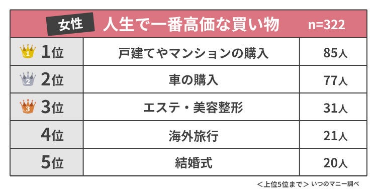 「人生で一番お金をかけたこと」男女500人アンケート調査