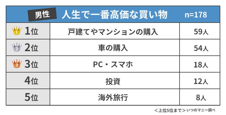 ・人生で一番高価な買い物1位は「戸建てやマンションの購入」