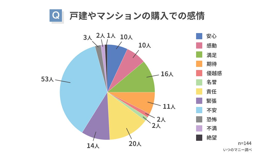 ■「戸建てやマンションの購入」での感情は「不安」が1位