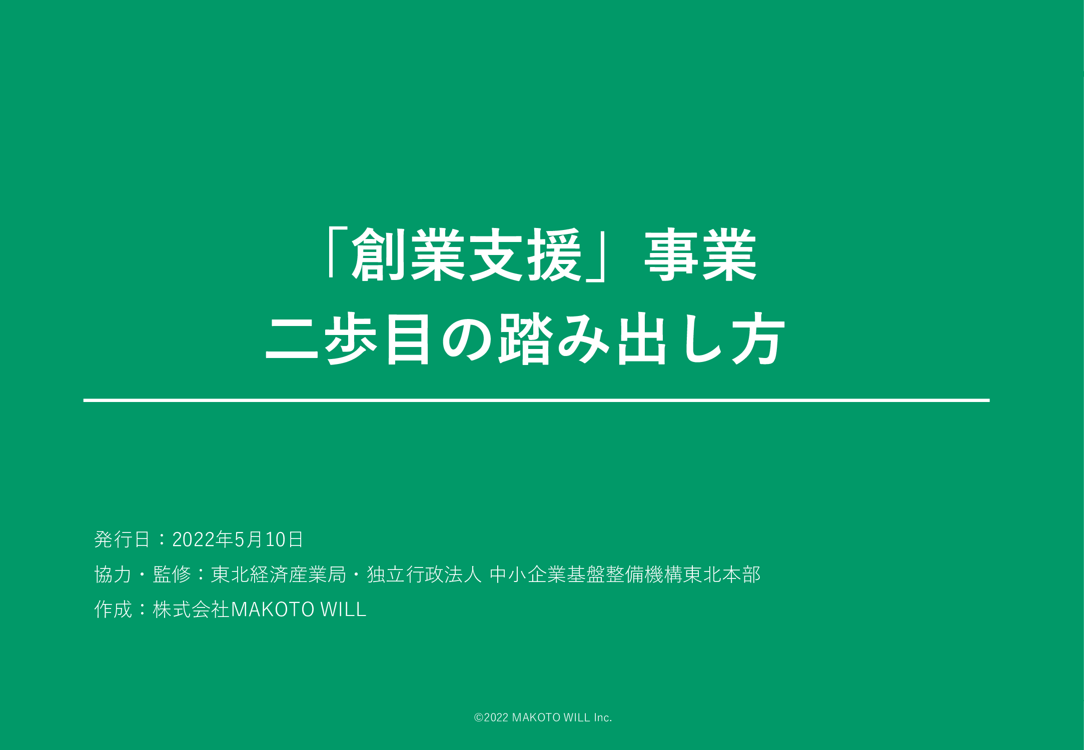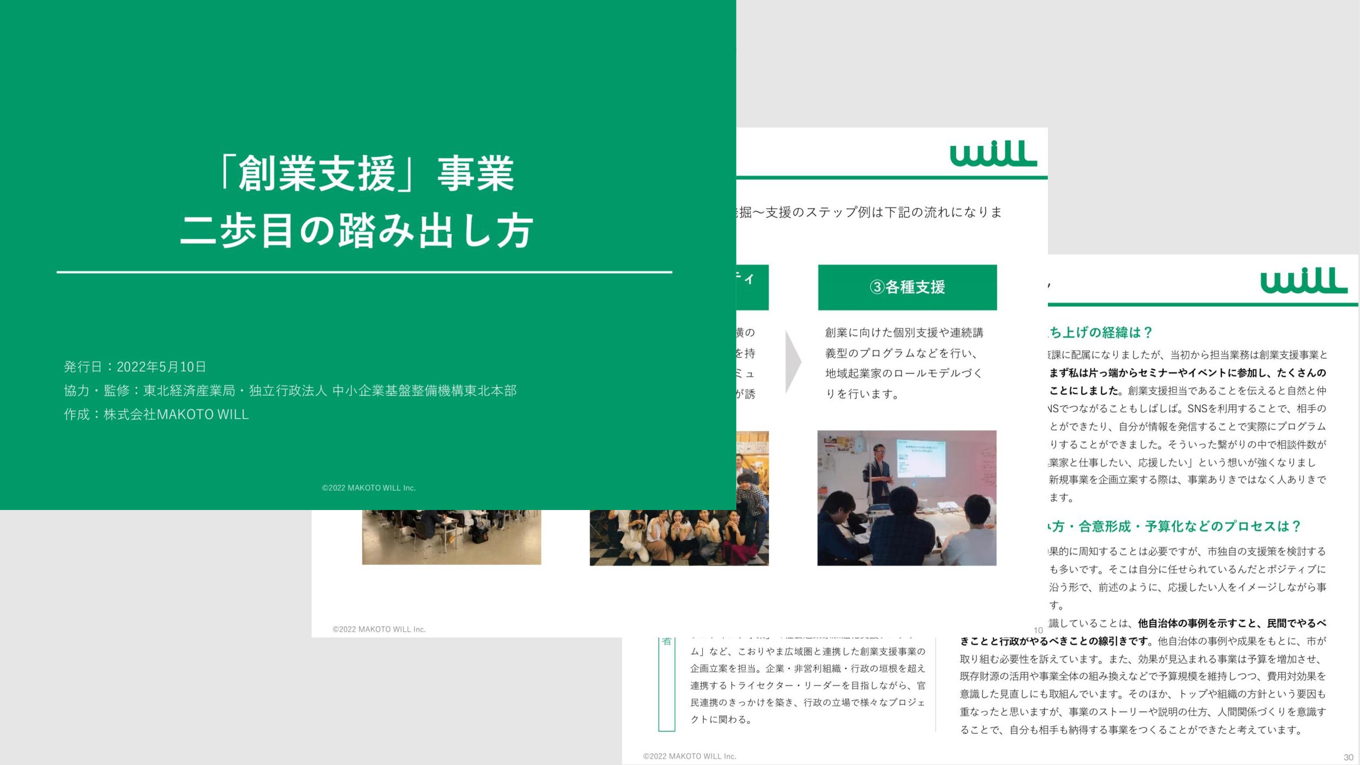 「自治体と共に地方から日本をおもしろく」をミッションに掲げ、自治体・地域の課題解決や創業支援を展開する株式会社MAKOTO WILL(宮城県仙台市、代表取締役 菅野 永)は、自治体の”創業支援担当者”に向けて作成した「『創業支援』事業 二歩目の踏み出し方」の無料公開を開始しました。