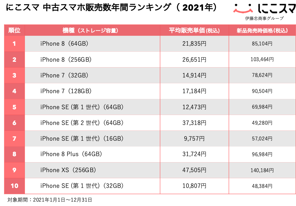 - にこスマ 中古iPhone販売数ランキング [2021年1月〜12月]