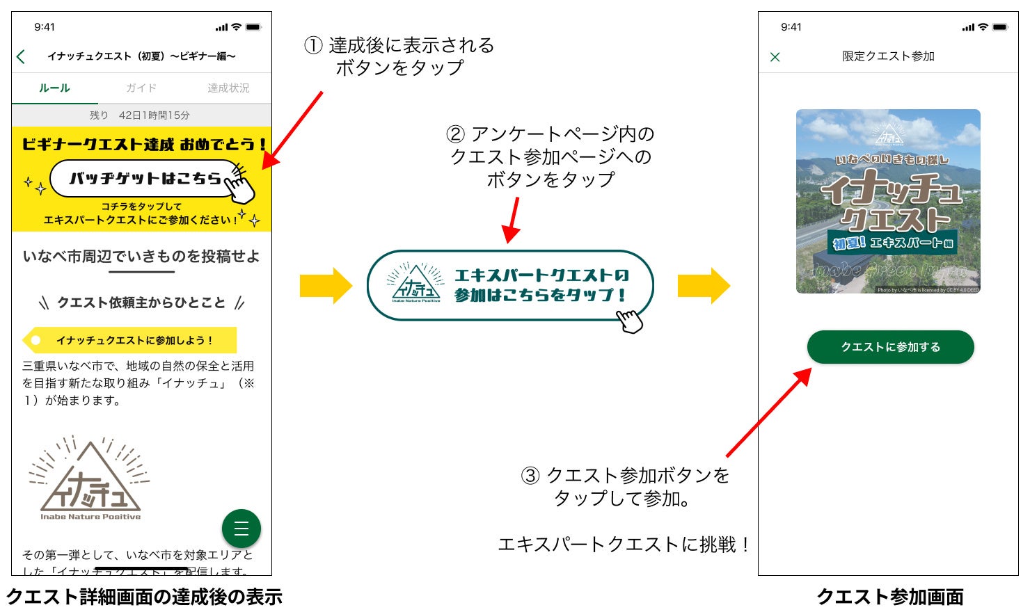 第一弾のイナッチュクエストでは、市内の全いきものを対象とするビギナー編と、春から初夏にかけて見られる特定の野草を探すエキスパート編をご用意しました。イナッチュクエストはこれからも季節ごとに配信を予定しています。クエスト達成で貰えるバッヂをコレクションして、イナッチュマスターを目指しましょう!