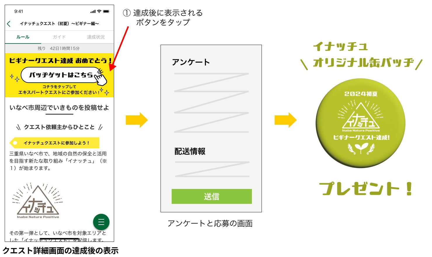 (4)クエストを達成してアンケートに答えるとオリジナルバッヂをゲット!
