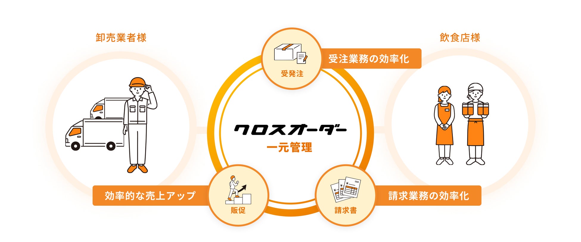 今回の「クロスオーダー帳票」の機能拡充により、請求書発行に加え、見積書・納品書の作成・送付までをワンストップで完結できるようになり、帳票管理にかかる手間やリスクを大幅に削減することができます。これにより、食品卸売業界のバックオフィス業務の効率化をさらに後押しします。