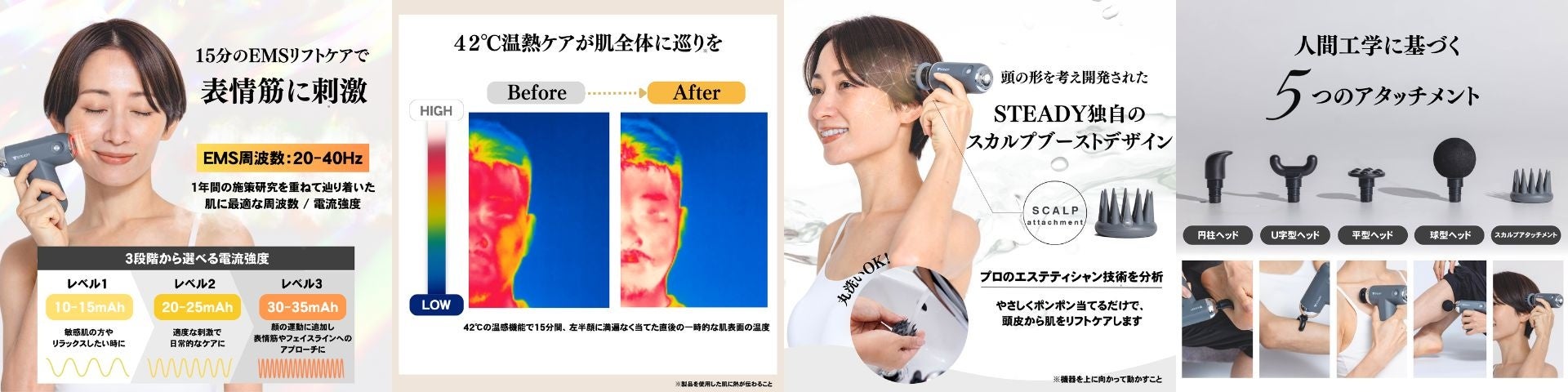 1日15分で全身のエイジングケア!美顔器 / スカルプケア機器 / リリースガンの3in1 STEADY初の美容機器「EMS美容&リリースガン」をMakuakeにて先行発売