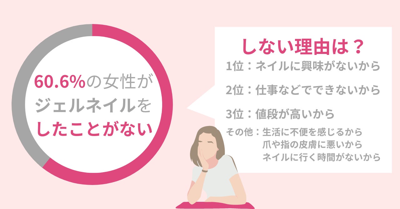 ●60.6%の女性はジェルネイル経験ナシ、理由第一位は「ネイルに興味がないから」