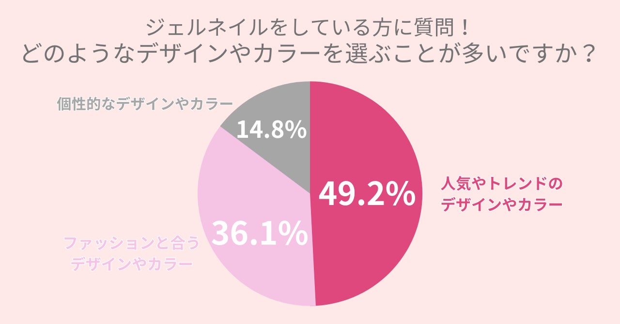 ・ジェルネイルをする際、49.2%の女性が「人気やトレンドのデザインやカラー」を選ぶ