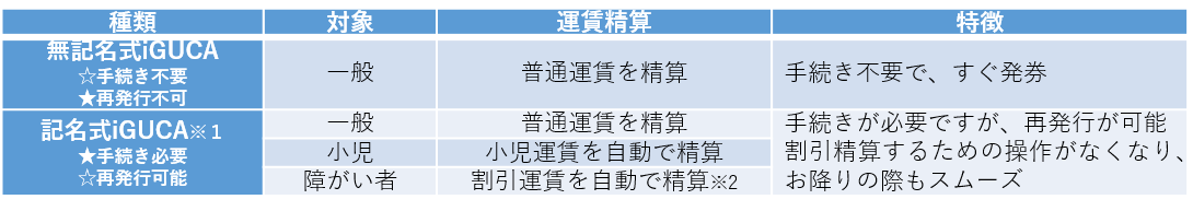※1「記名式iGUCA」には氏名等の情報が登録されます。なお券面には、定期券区間や氏名等は印字されません。