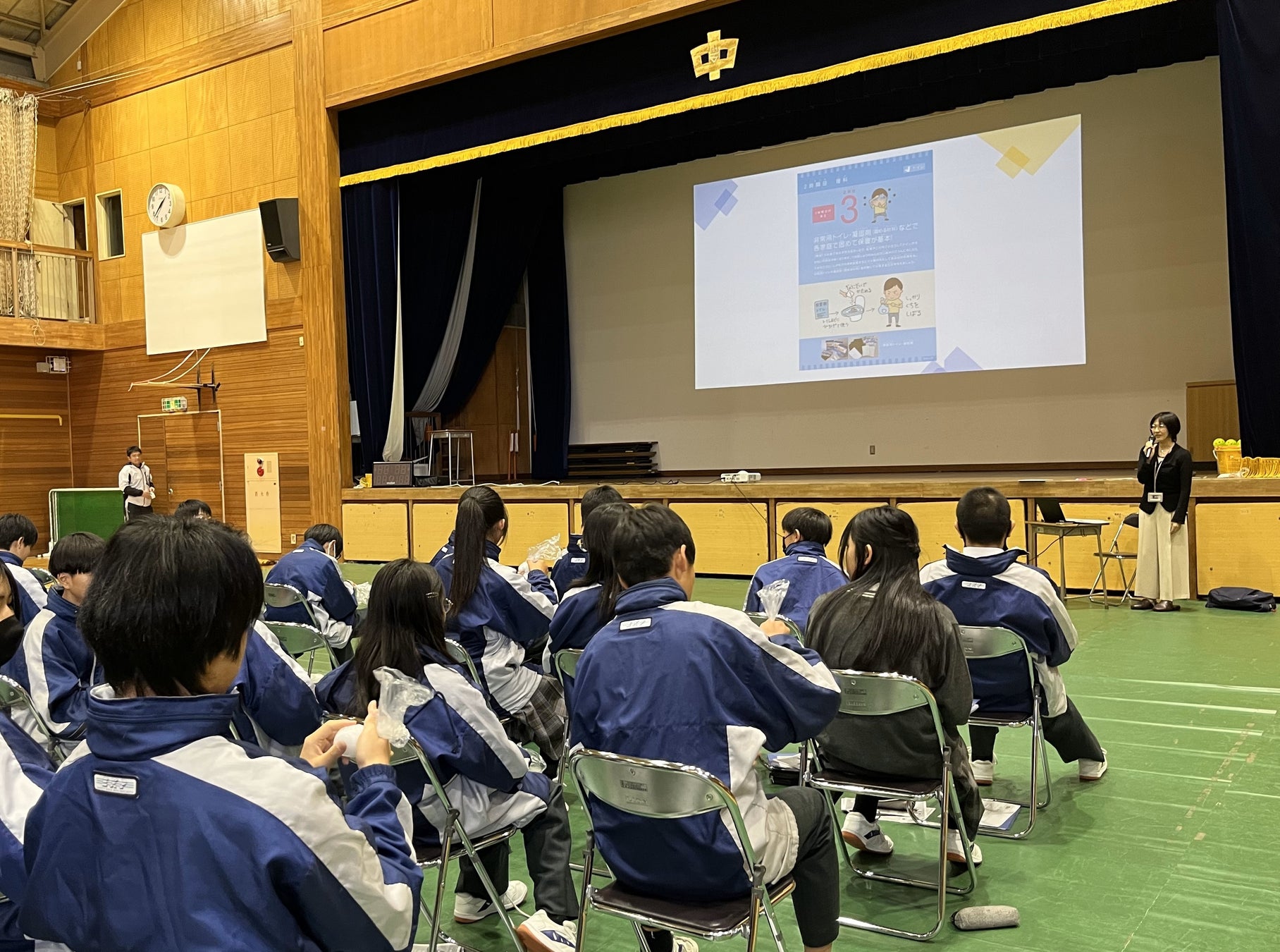 今回の出張授業は2024年10月18日(金)大阪市立加美南中学校(大阪府大阪市平野区)の全校生徒(385名)、2024年12月11日(水)神戸市立岩岡中学校(兵庫県神戸市西区)の中学1年生(94名)、2025年1月21日(火)大阪市立長居小学校(大阪府大阪市住吉区)の小学4年生(124名)を対象に行われました。授業は三菱地所レジデンスが開発した防災ツール「そなえるカルタ」「そなえるドリル」を活用し、ワークショップを実施。「そなえるカルタ」「そなえるドリル」のテーマに沿って、被災地で課題となるトイレ事情をはじめ、家族一人ひとりに必要な備えなど、「そなえるカルタ」「そなえるドリル」にある被災地の生の声を聞き、具体的な行動につなげられるよう学んでもらいました。