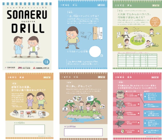 三菱地所レジデンスが開発し、東日本大震災・熊本地震等被災地の生の声をもとに、実際に困ったことを「トイレ」・「食糧」・「情報」といった切り口で伝えるのが「そなえるカルタ」、子どもと大人が家族を想定して考える防災ツールが「そなえるドリル」です。