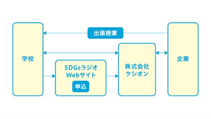 「SDGsラジオ」内コンテンツの1つとして、企業が予定している出張授業の内容をSDGsラジオのサイト内に掲載。ケシオンが企業と学校の間に立ち、出張授業の窓口を担います。SDGsラジオの全国の小中学校・高等学校とのつながりを活用し、三菱地所レジデンスの出張授業が実現しました。SDGsラジオによる出張授業としては初の事例です。
