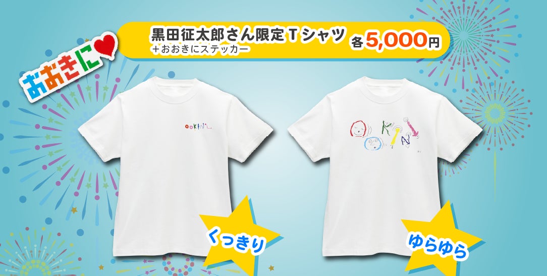 ここでしか手に入らない限定Tシャツとおおきにステッカーをセットでお渡しいたします!