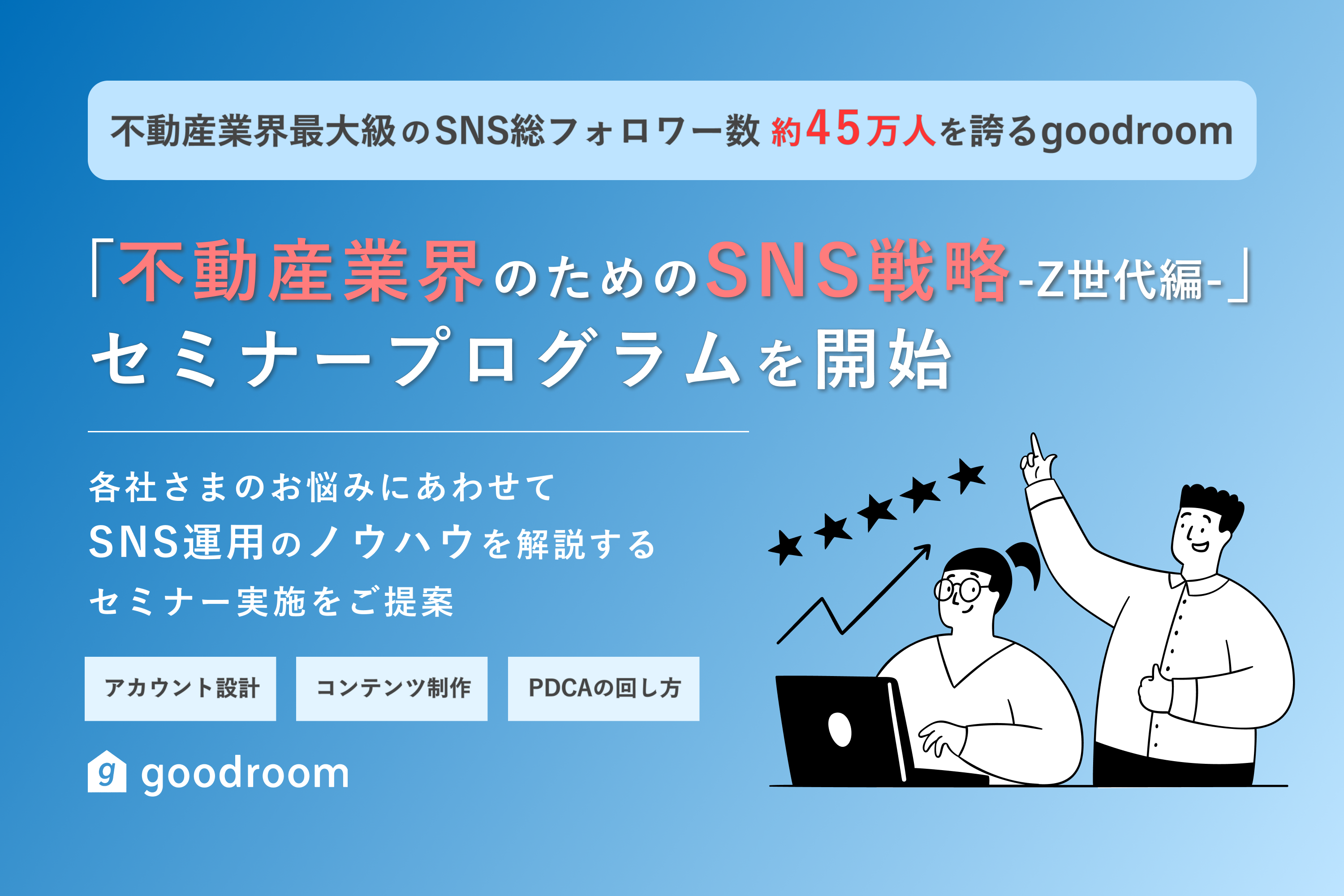 不動産業界最大級のSNS総フォロワー数約45万人を誇るgoodroomが「不動産業界のためのSNS戦略-Z世代編-」セミナープログラムを開始