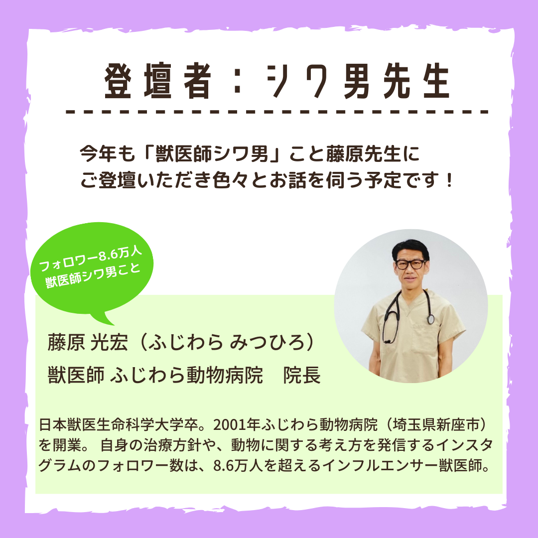 様々な分野での最新情報を共有させていただきながら、獣医師の藤原先生にもコメントいただく充実したトークセッションを予定していますので、ぜひ皆さんのご来場・ご視聴をお待ちしております!