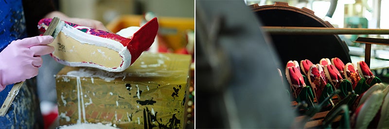 SOU・SOU の2023 年秋冬新作・サイドゴア革足袋/ いろは底は、ゴム工業の発祥地として100 年以上の歴史を有する兵庫県高砂市の「高砂産業」謹製。高砂産業は、1969 年創業の地下足袋工場で、国産地下足袋がなくなりつつある現在も、釣り用、スパイク付き野球用など、様々な地下足袋を作っています。SOU・SOU 足袋は、一工程一工程を手作業でていねいに、昔ながらの熟練の技を駆使して国内の地下足袋工場で作られる、現代においてとても希少な地下足袋なのです。
