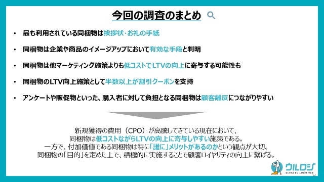 調査結果から低コストでLTVを最大化するための同梱物の工夫のしかたもご紹介します。