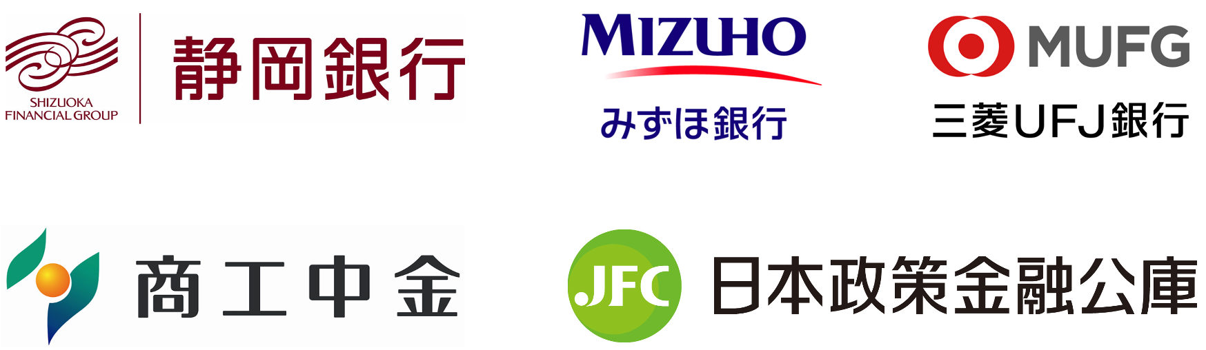 静岡銀行、みずほ銀行、三菱UFJ銀行、商工組合中央金庫、日本政策金融公庫 など