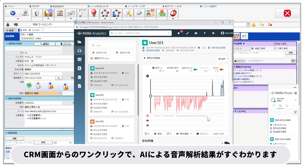通話音声分析、音声感情認識をCRM情報に自動的に紐づけ、品質向上を実現