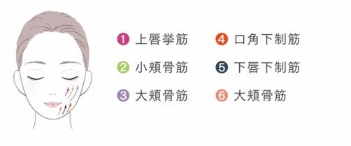 顔には目を開いたり表情をつくる時に動かす「表情筋」と呼ばれる筋肉が存在し、その中には、眉や目元の皮膚を引っ張り上げる「前頭筋」や、口角を引き上げる「大頬骨筋」、咀嚼するときに使われる「咬筋」など、大小合わせて30以上の筋肉があります。