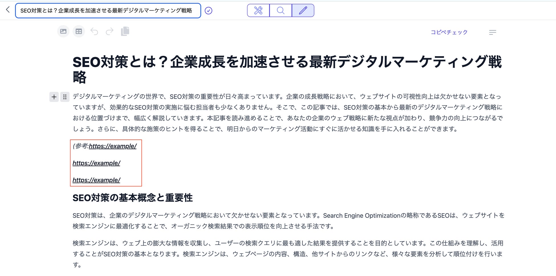 各見出しの文末に参考にしたサイトのURLが自動的に記載されます。