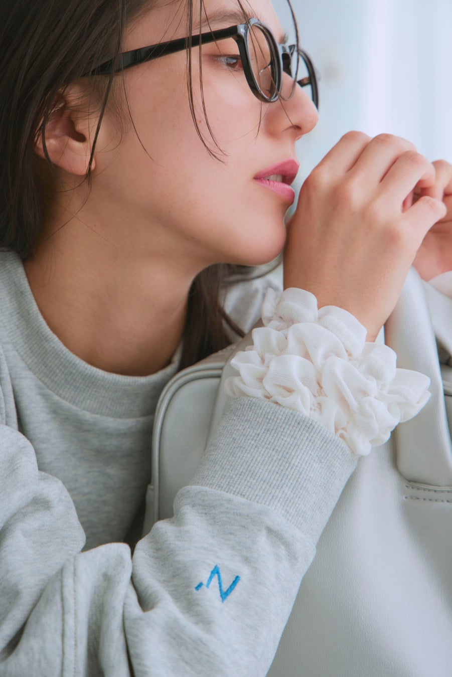 袖口にさりげなくブランド名の「N′」ロゴをしのばせ、ほんのり差し色で遊び心をプラス。