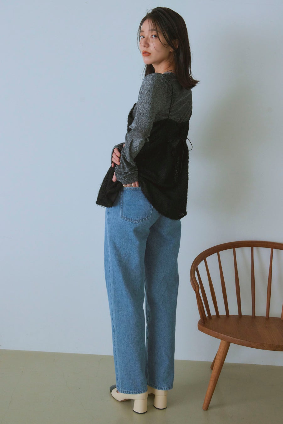 Cut&sewn:13tm08b ¥3,960/Fur camisole:13tm03r ¥3,960/Denim pants:15bm03j ¥2,990