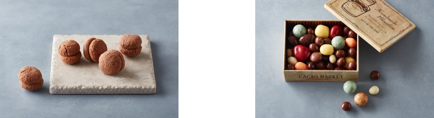 「カカオマーケットbyマリベル」はNYに本店を構える「マリベル」のサブブランド。大人気のチョコレートボールを、キュートなイラストのオリジナル缶に詰めました。ハンドメイドのカラフルなチョコボールは、バレンタイン限定フレーバーです。
