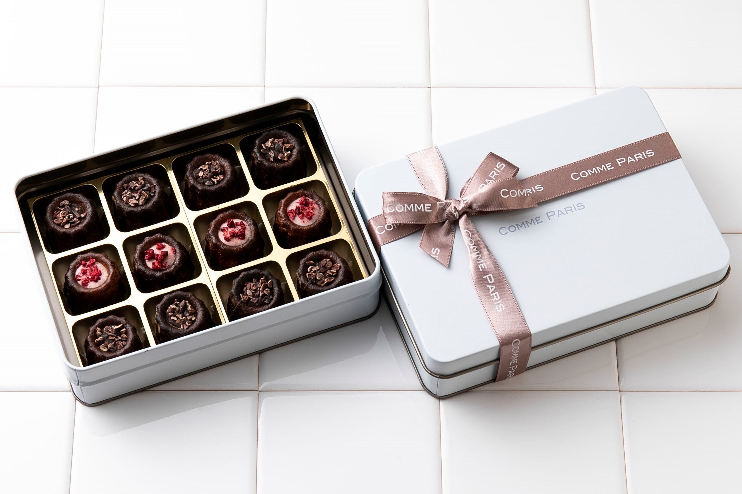 オリジナルボックスに、大人気のショコラカヌレ・いちごカヌレを入れたバレンタイン限定セットです。ショコラカヌレは、フランス産クーベルチュールチョコと有機カカオニブを使用し、カカオ本来の味わいをお楽しみいただけます。いちごカヌレは、生地にいちごをたっぷり加えて焼き上げた、ほんのりピンクがかわいいカヌレです。