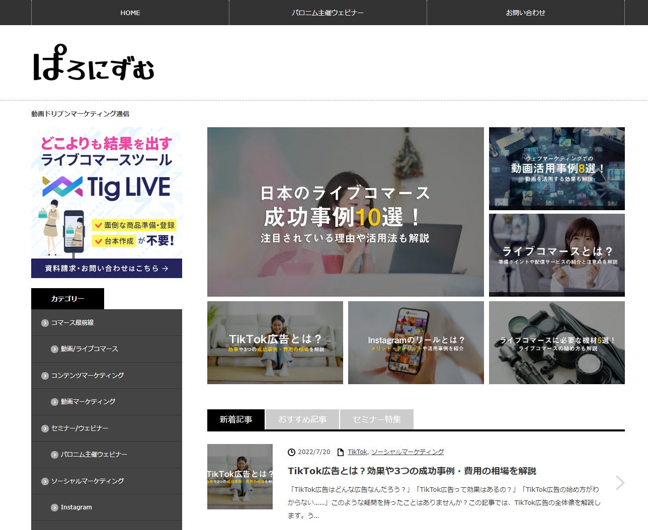 パロニム株式会社(本社:東京都港区、代表取締役:小林 道生、以下 パロニム)は、動画マーケティング、ライブコマースの最前線を学べるメディア「ぱろにずむ」をリブランドいたします。