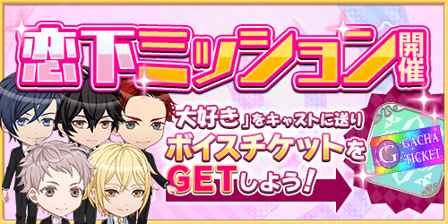 メッセージで「大好き」と送った数で、ストーリーチケットがもらえちゃう♪いつもとは違う彼の姿が見られるシナリオストーリーも読めちゃうから、たくさん伝えちゃお♡