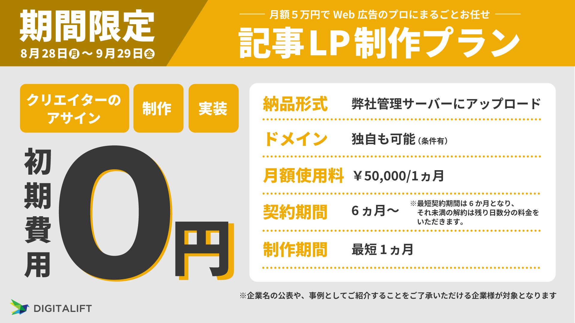 デジタリフト、初期費用0円で始められる記事LP制作プランを期間限定で提供開始