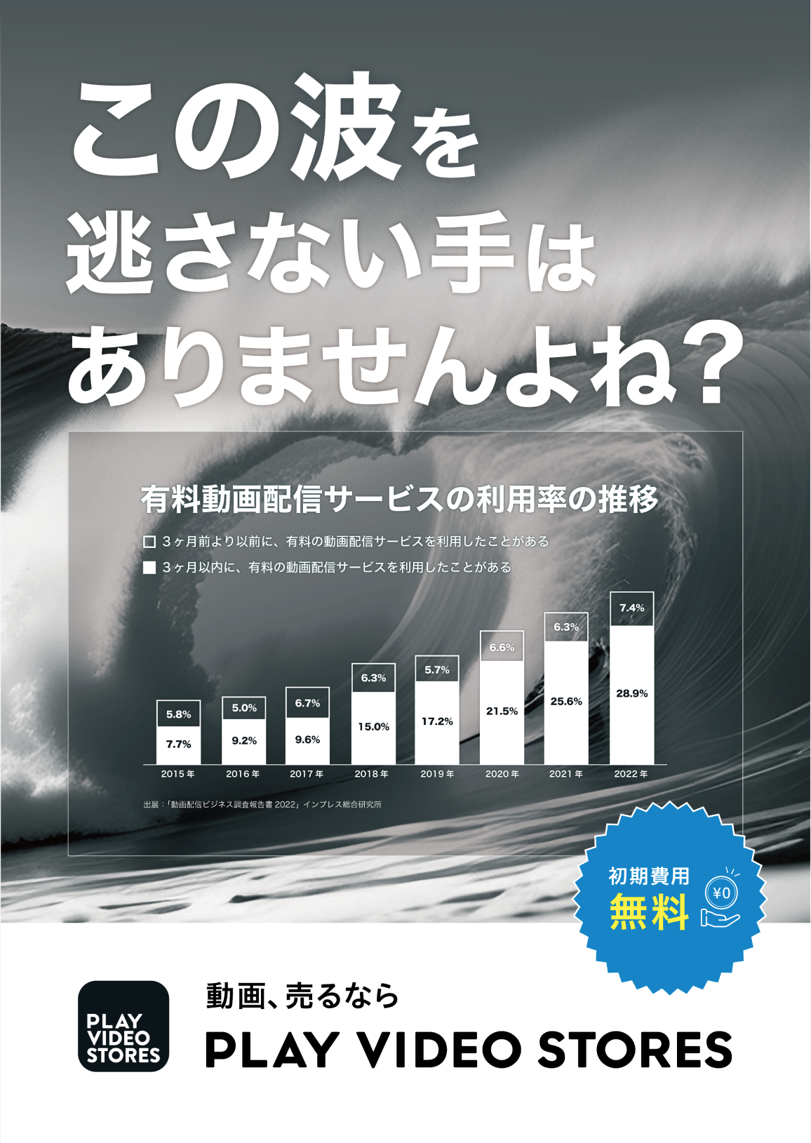 PLAY VIDEO STORESとは、企業向け動画配信・販売プラットフォームです。PLAY VIDEO STORESを利用いただくことで、自社ブランドの動画配信サイトを簡単に構築することができます。