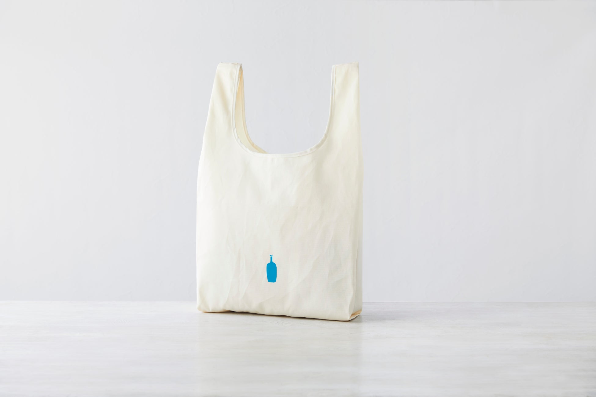 シンプルなデザインで使い勝手の良いマルシェバッグを鹿児島エリアにて数量限定販売します。生成りのコットン素材からなるこちらのバッグは、開口部が広く大きなものも出し入れがしやすく、さまざまなシーンで幅広くお使いいただける丈夫なデザインです。ショッピングバッグとしてカジュアルに持ち歩きもしやすく、またブルーボトルのロゴがさりげなく施された、ファッションアイテムとしても活躍するアイテムです。