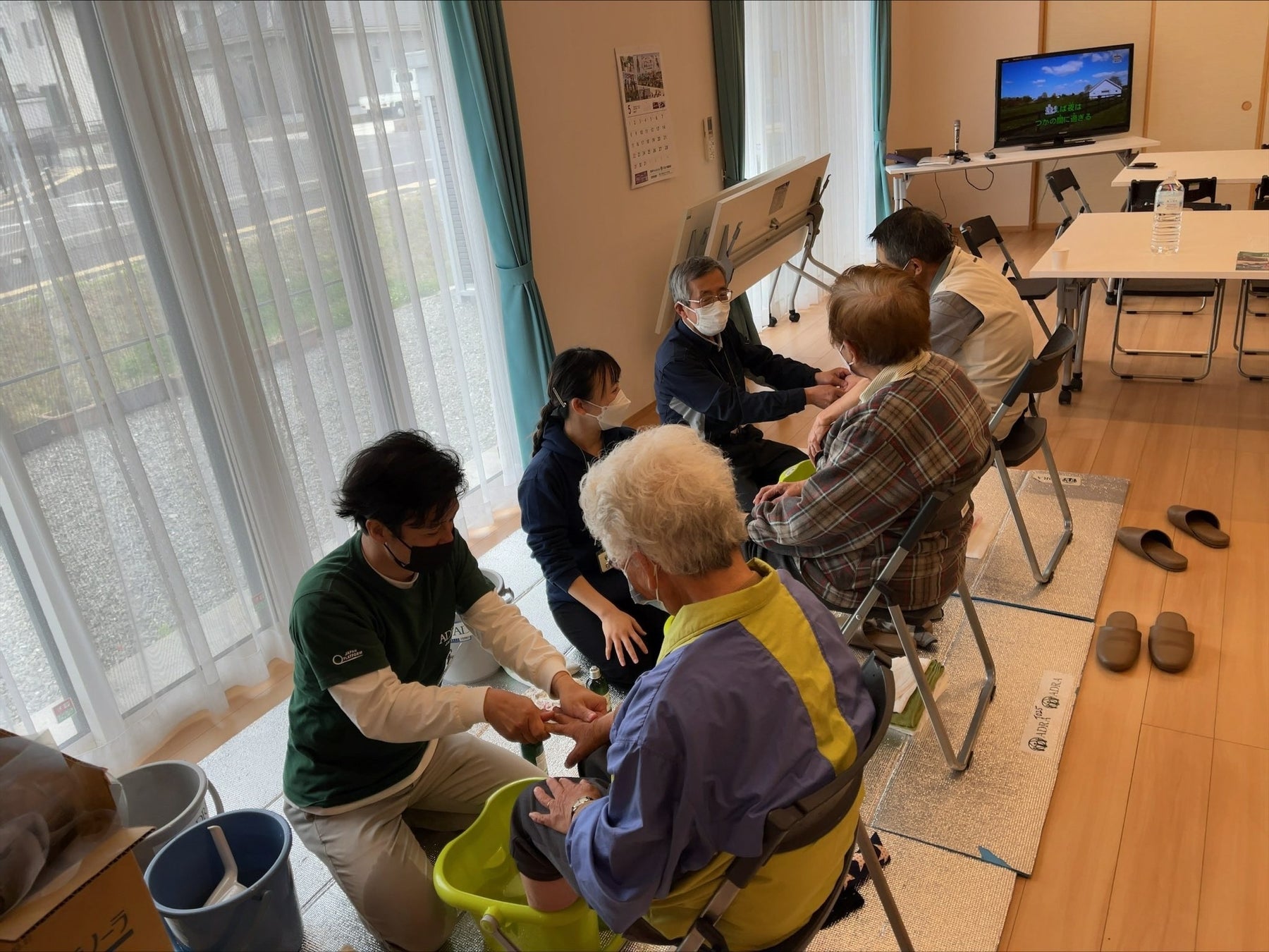 足湯は、ADRAが国内災害の被災者の方々を対象に心身の疲れや不安を少しでも解消するために取り組んでいるボランティア活動です。また、この足湯をきっかけに、お一人おひとりが抱えているお困りごとの支援につながることも多いため、ADRAが大切にしている活動のひとつです。度々起こる災害で被災された方を対象に必要とされるタイミングで開催しています。