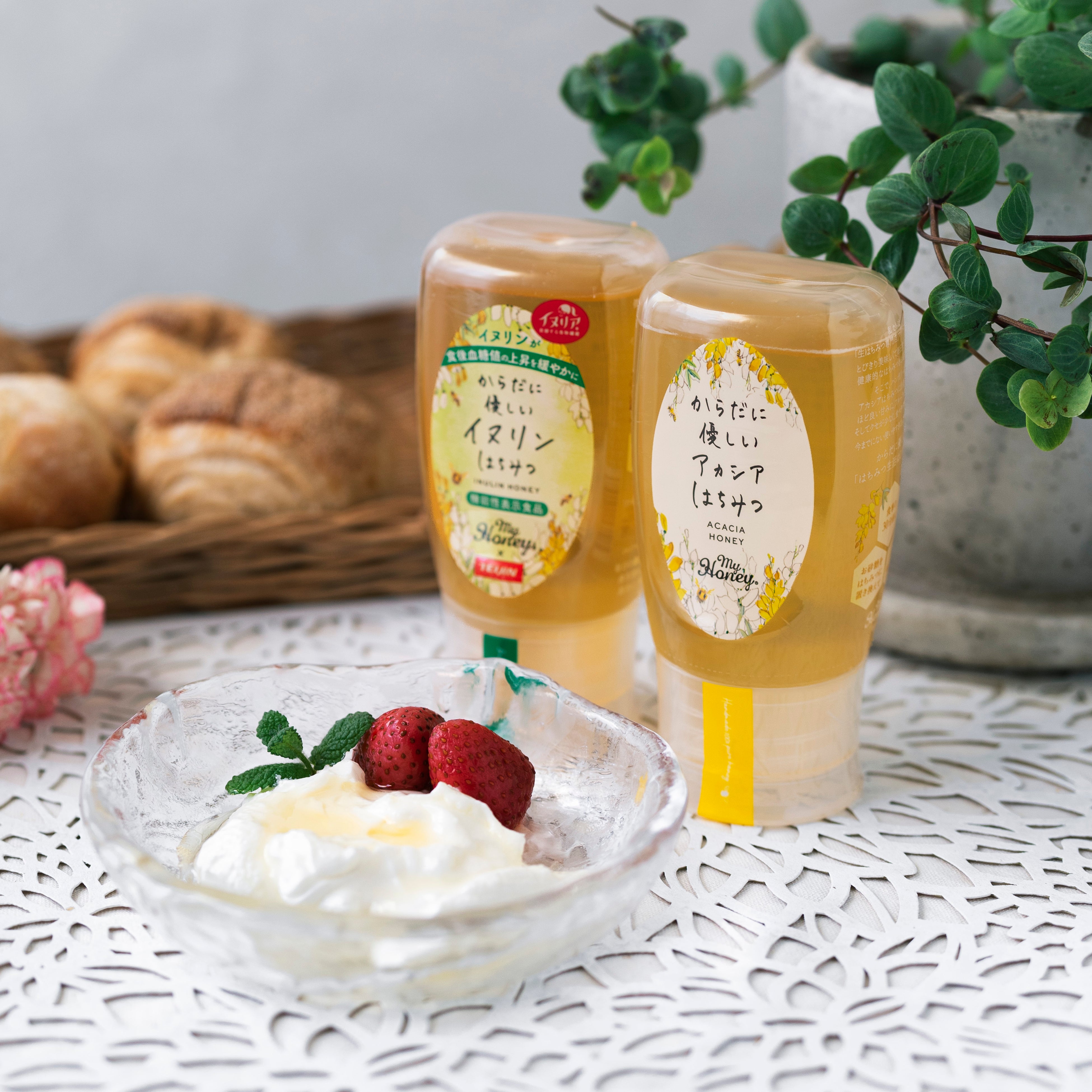 「からだに優しいイヌリンはちみつ」は食後の血糖値上昇をゆるやかにしてくれるもの。機能性表示食品を取得しています。ナッツの蜂蜜漬けは、毎朝のパンやヨーグルトのおともにおすすめ。たっぷり浸み込んだ生はちみつを存分に味わってください。