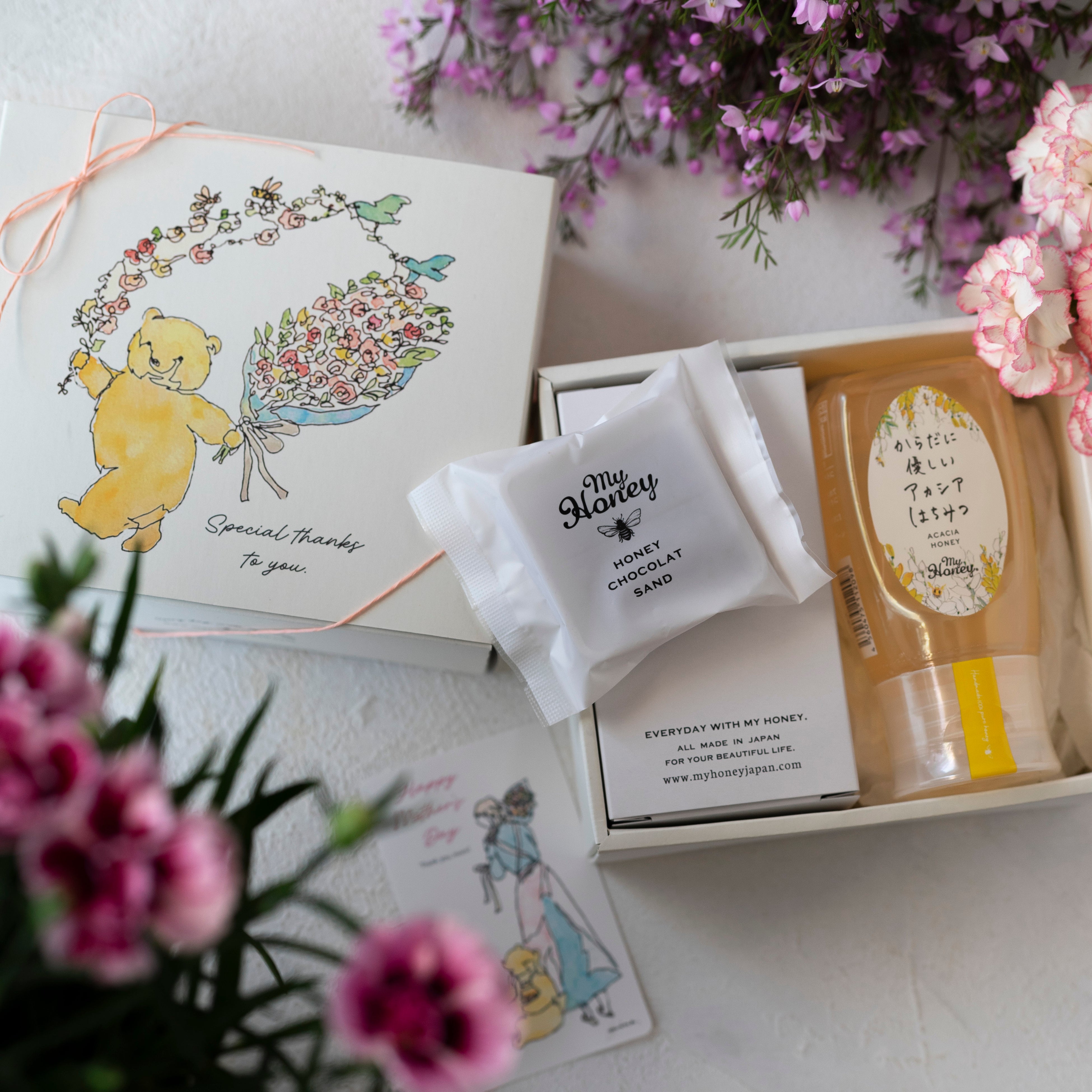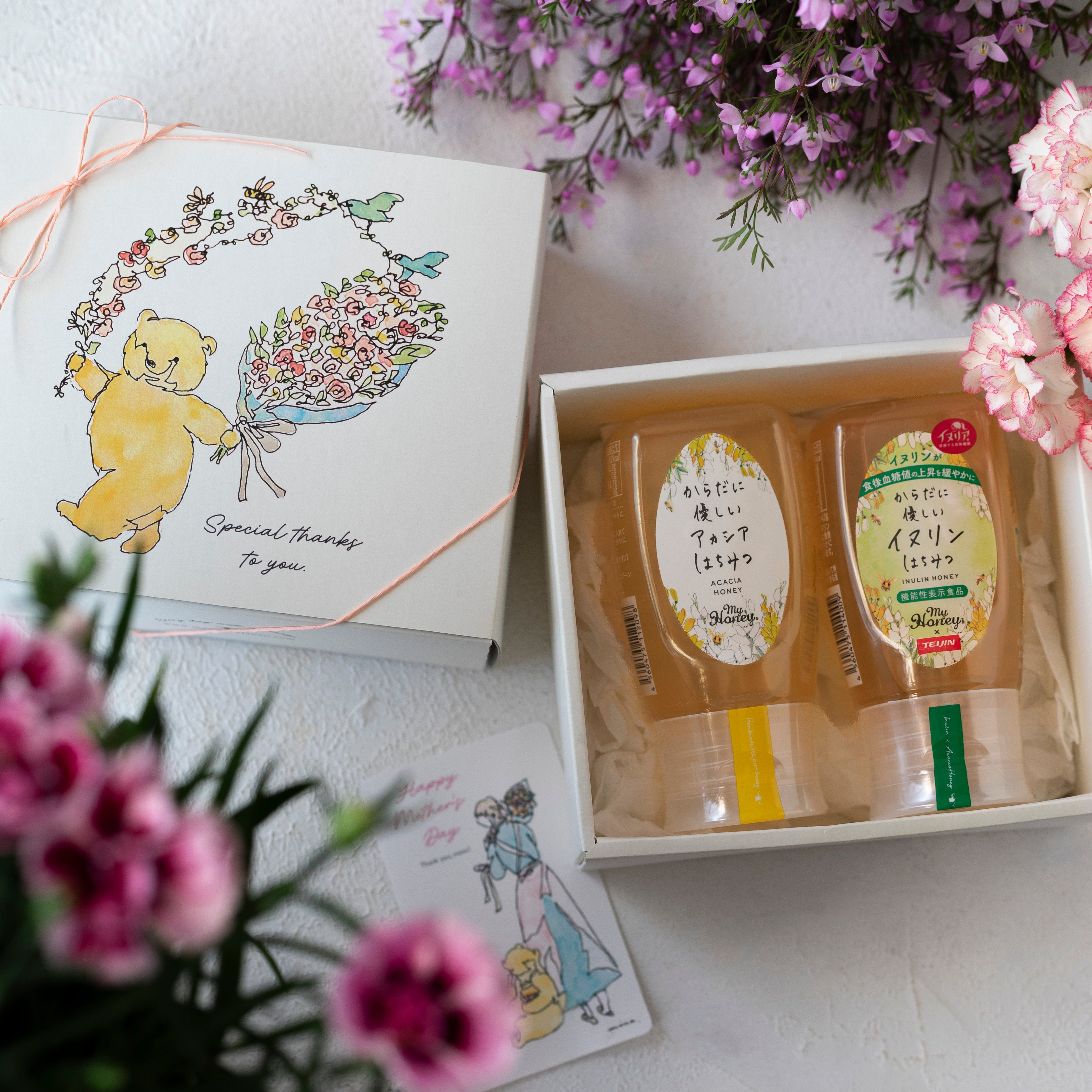 MYHONEYからアカシアはちみつと人気商品をセットにした、母の日限定セットが登場。