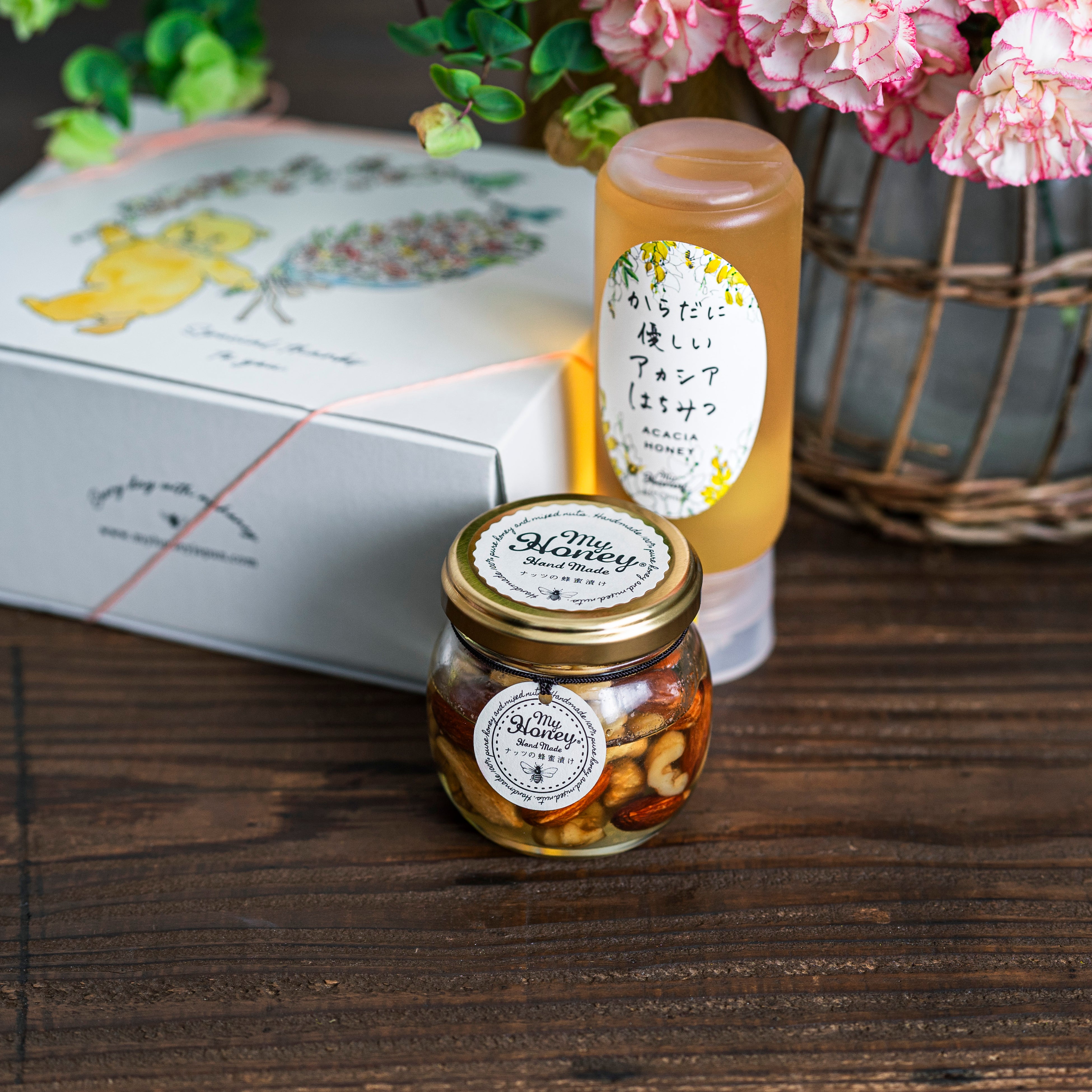 全てのセットには、1年以上、Amazonのはちみつランキング1位を獲得中の 「からだに優しいアカシアはちみつ」が含まれています。あなたのマイハニー(My honey=大切なお母様)のために、ぜひ母の日限定セットを選んでみてはいかがでしょうか。