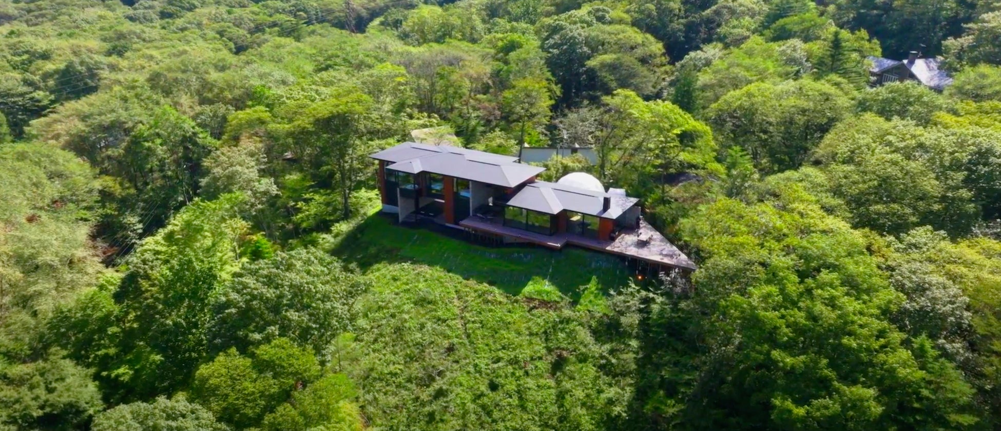 扇平別荘地内の約2,800㎡の敷地に佇む約280㎡のタイムシェア別荘「空ノ庭」。軽井沢駅より車で約10分、豊かな自然に囲まれた高台からは、軽井沢を象徴する雄大な浅間山の眺望が広がります。