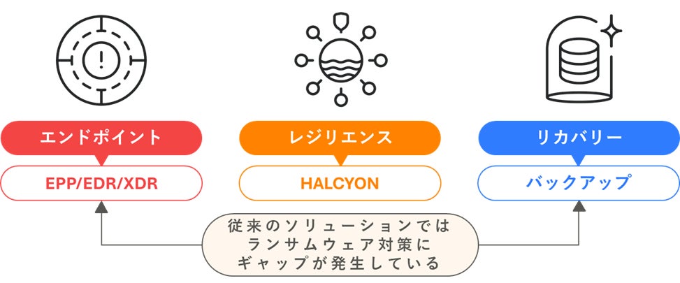 【図表:Halcyonが補完するランサムウェア対策の機能】