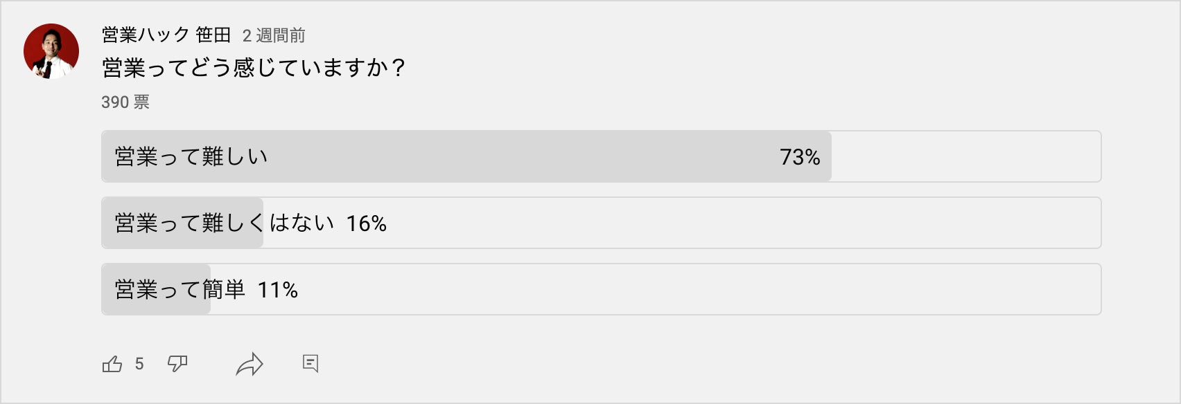 年末に行った私のYoutubeで行ったアンケート調査でも「営業は難しい」と感じている方は7割を超えました。