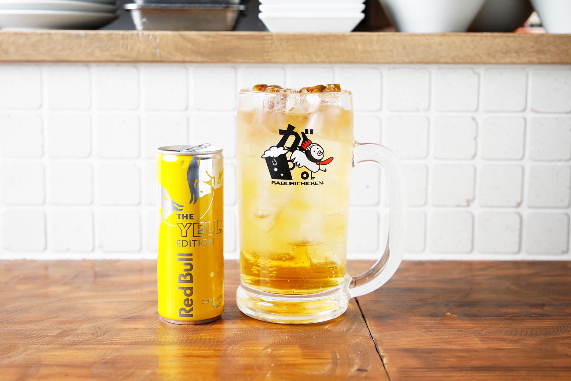 エキゾチックでトロピカルな風味の「がブリチキン。」限定で味わえる一杯。自慢の漬け込みフレーバー「パイン」に、「レッドブル イエローエディション」を使用しました。