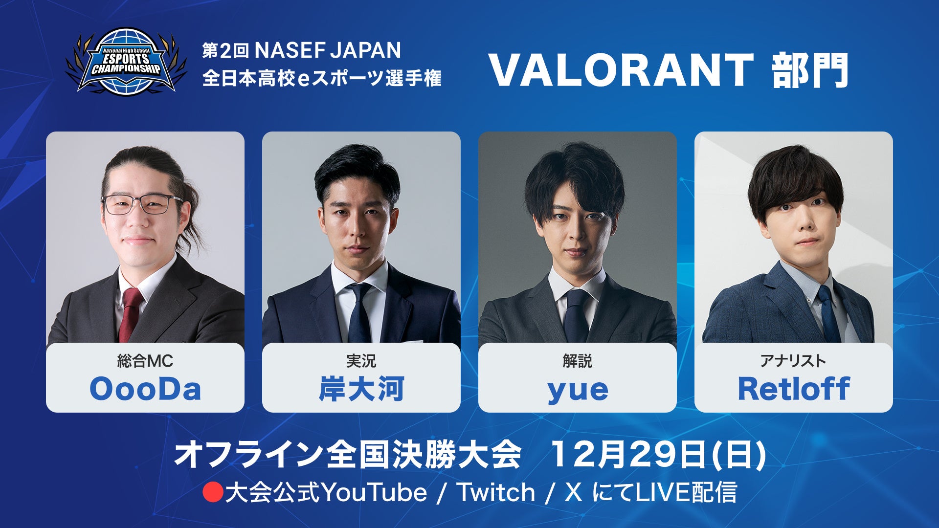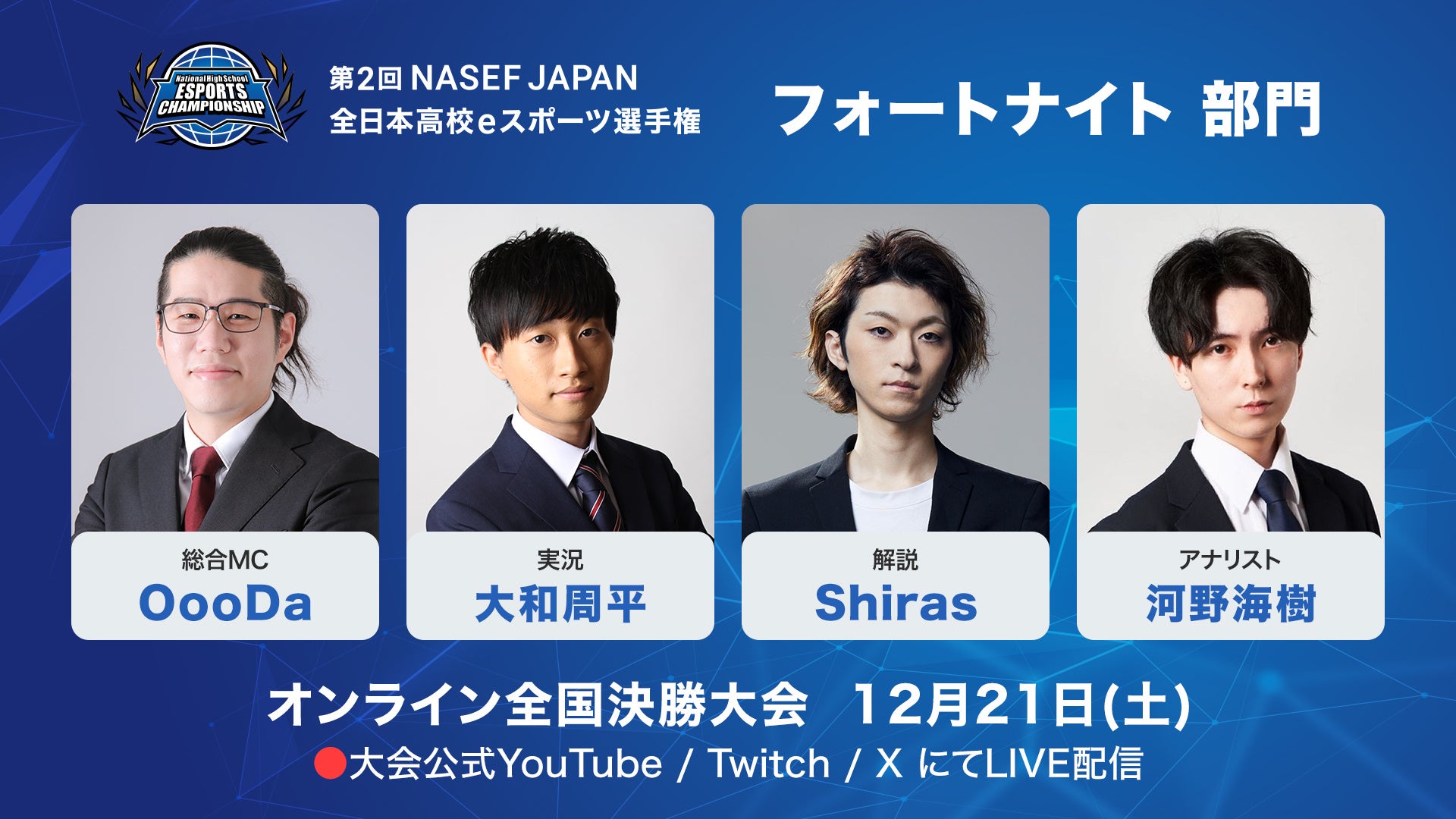 「第2回 NASEF JAPAN 全日本高校eスポーツ選手権」全国決勝大会が12/15(日)より開幕!注目の出演者情報も解禁