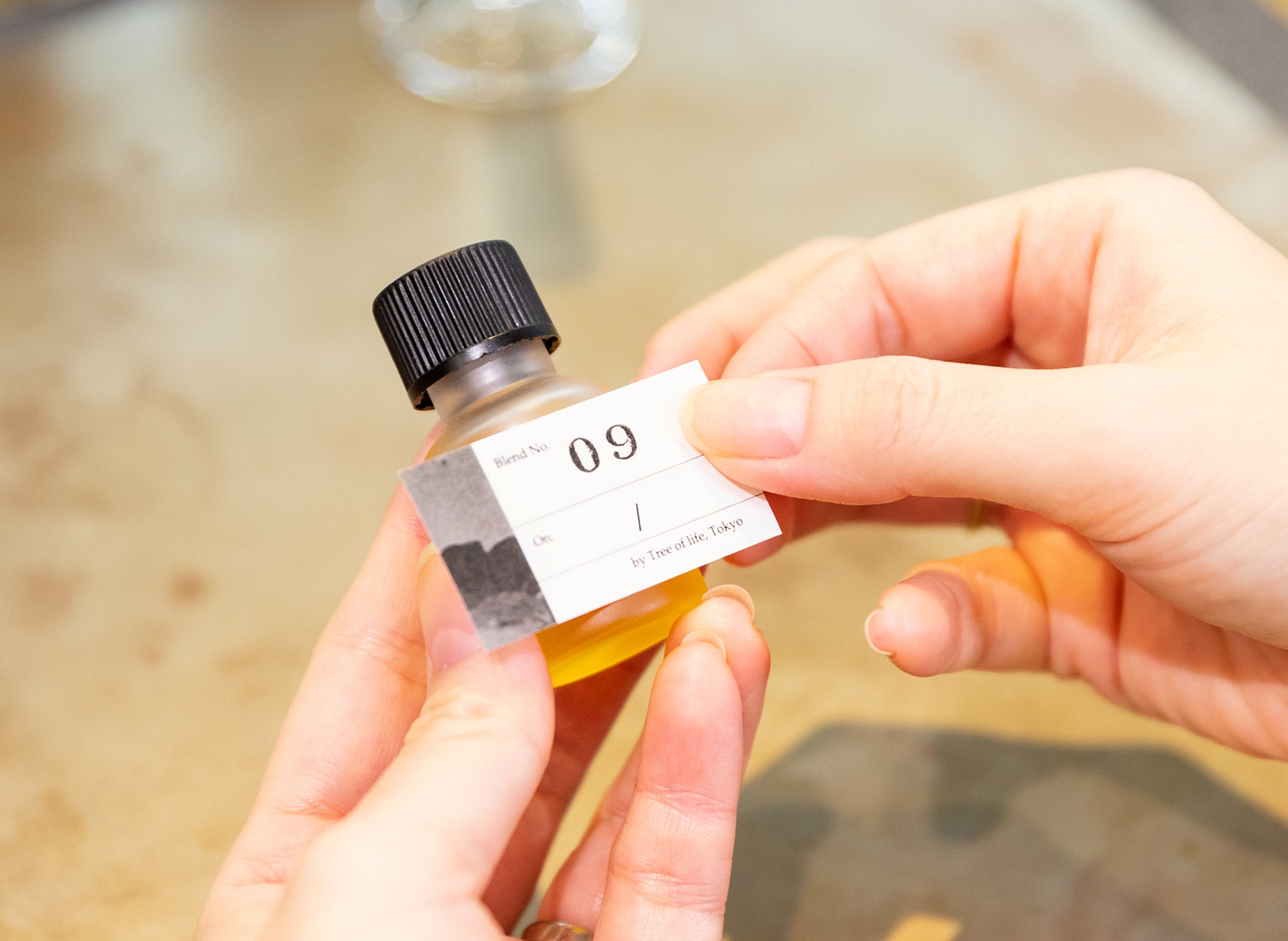 ※結果に出なかった香りをお試しいただいて、ブレンド作成することも可能です。ブレンドオイルが入ったボトルにラベルを貼り、ブレンド番号のスタンプを押していただきます。