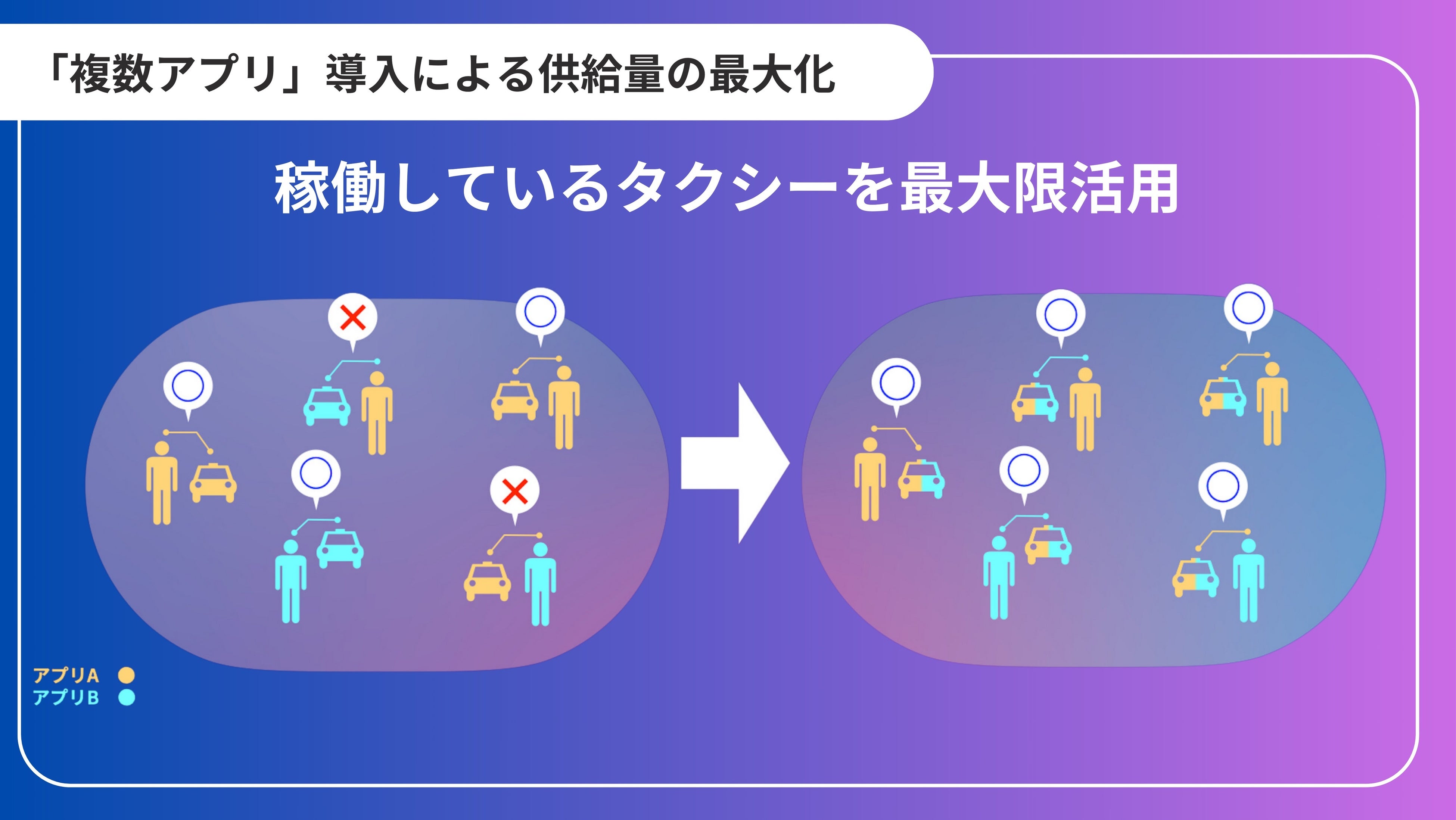 「複数アプリ」導入による都市全体の配車効率向上のイメージ