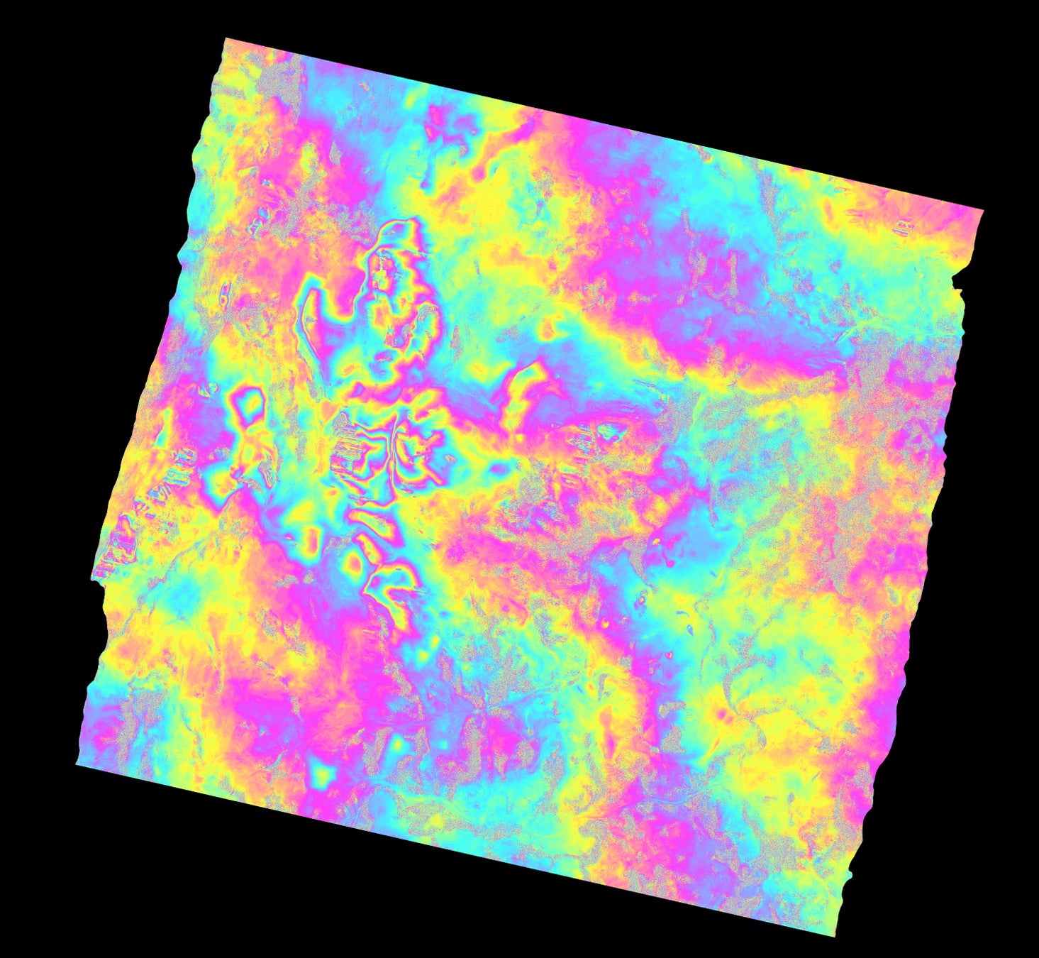 干渉SARは、異なる日時に同条件下で観測された複数のSARデータに高度な処理を施すことで、微小な地表の動きを計測することができる手法です。今回は異なる日時に観測された画像のペアを日次(1日回帰)で取得することに成功しました。