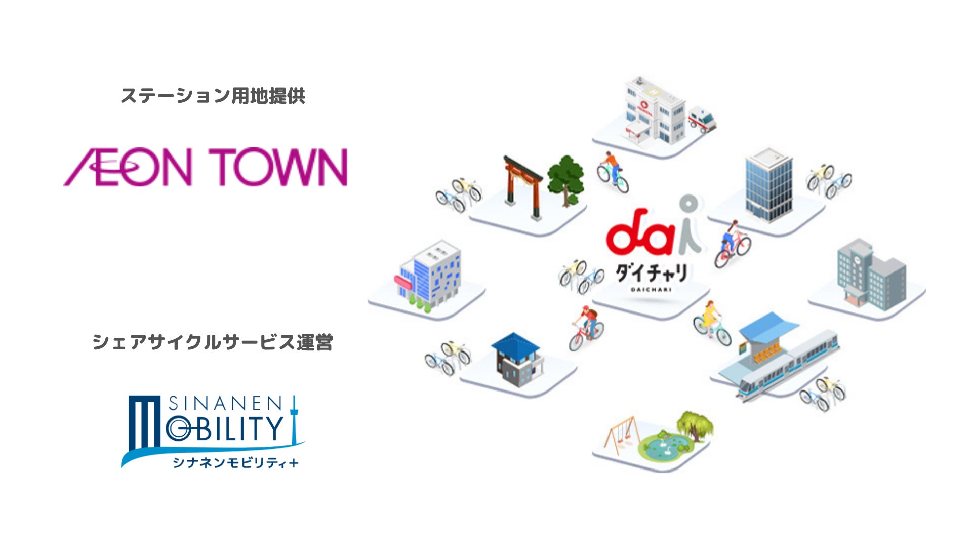 そして今回、シェアサイクルユーザーの利便性を高めていくために、イオンタウンと提携し、2020年にふじみ野市の新たなランドマークとして誕生した「イオンタウンふじみ野」に、「ダイチャリ」のステーションを2月1日に設置いたします。