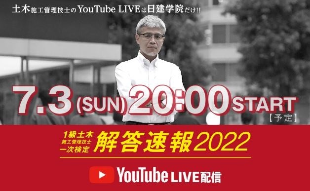 【2022(令和4)年度 1級土木施工管理技士 一次検定】試験当日(7/3) 20:00~YouTubeにて「解答速報」無料LIVE配信!